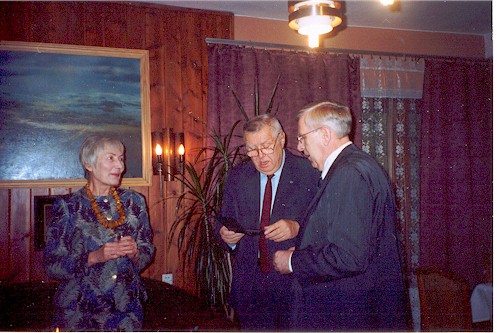 Bei einem Festessen wurde mir am 15.Okt. die im April 2002 vom Polnischen Verband der Bergbauingenieure und Techniker 'SITG' verliehene Ehrenmedaille in Silber ausgehändigt. Die Gedenkmedaille “Stillegung der Steinkohlengruben in Waldenburg 1536 -1999” wurde als Anerkennung meiner Verdienste zur Förderung des Geschichtsbewusstseins des Waldenburger Steinkohlenbergbaus überreicht. Ich muß eingestehen, einer der schönsten Tage meines Lebens. Dabei bleiben unsere tragischen Jahre nach dem Kriegsende in Schlesien nicht vergessen. Wie sich doch die Zeiten geändert haben. Von den bisher vergebenen 33 Medaillen bin ich der vierte Deutsche. Siehe auch: Ehrenmedaille . Ich erforsche die Geschichte der Kohlenbauernsippe Böhm im Gebiet des Dreiecks Weißstein, Hermsdorf und Dittersbach.