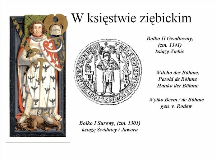 | 1366 | Witigo II. (Witche genannt) Behem (Sohn), Ritter auf der Veste Swarczenwalde (Schwarzwaldau). Ehefrau Jutta von Czirne oder von Seidlitz. Hierzu haben die Historiker noch verschiedene Meinungen.