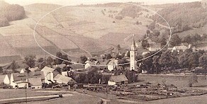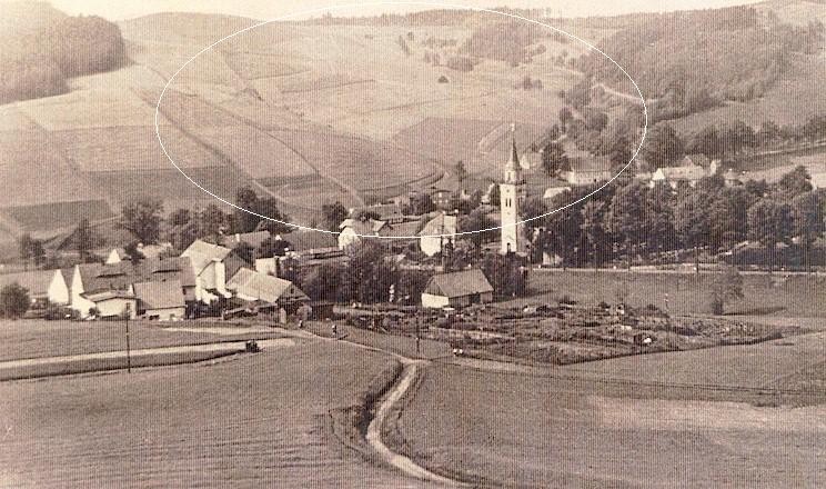 Vordergrund: Rückansicht der "Stadt Wien" von links Tanzsaal, Wohnhaus, Ställe. Bildmitte: ehemaliger Martin-Hof |