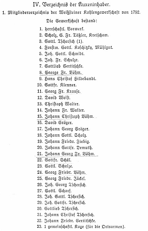 Verzeichnis der Kuxeninhaber von 1792, Weissstein