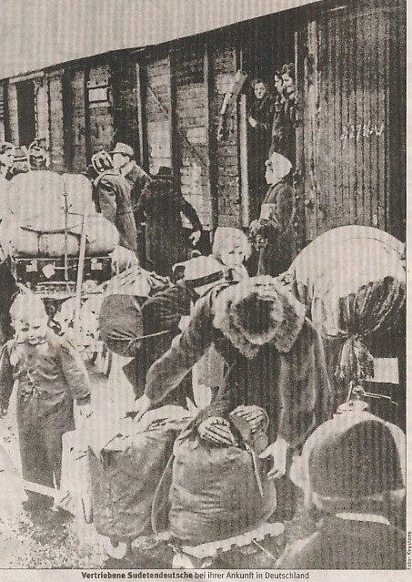 Wir wurden im Sommer 1948 mit zwei weiteren Bergarbeiterfamilien von Friedland, Kreis Waldenburg, ausgewiesen. Am Güterbahnhof stand ein Viehwaggon, in dem alle ihr bischen Hab und Gut in Rucksäcken, Kartoffelsäcken und Taschen verstauten. Ich kann mich erinnern, mein Vater hatte wohl schon Monate vorher von einem Bekannten zwei Holzachsen mit Holzrädern - wie im Mittelalter - anfertigen lassen. Diese waren nun an einer Zinkbadewanne angebracht, vollgepackt mit Federbetten und anderen Sachen. Vater sagte noch, bis zum Bahnhof werden die Räder wohl halten. Handwagen und Kinderwagen gab es keine mehr. "Richtige Räder" offensichtlich auch nicht. Das hatte man alles bei der Flucht und bei den ersten Vertreibungen benötigt.
