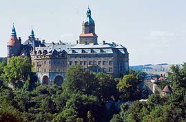 Im Waldenburger Bergland, zwischen der fruchtbaren niederschlesischen Tiefebene und dem dichtbevölkerten Waldenburger Industriegebiet, ruht Schloß Fürstenstein inmitten seiner dichten Wälder und Parks wie eine stille Insel. Seine strategische Bedeutung am Handelsweg von Breslau nach Prag bestimmte den Ausbau Fürstensteins als Grenzfeste der schlesischen Herzöge von Schweidnitz und Jauer. Es liegt auf einem steilen Felskegel hoch über dem Hellebach, der seit dem 19. Jahrhundert als der romantische Fürstensteiner Grund berühmt war.