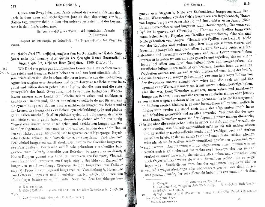 "Excerpta aus der Lehnsregistratur der Fürstenthümer Swidnicz und Jawer", herausgegeben von Harald von Niebelschütz - Gleinitz:
