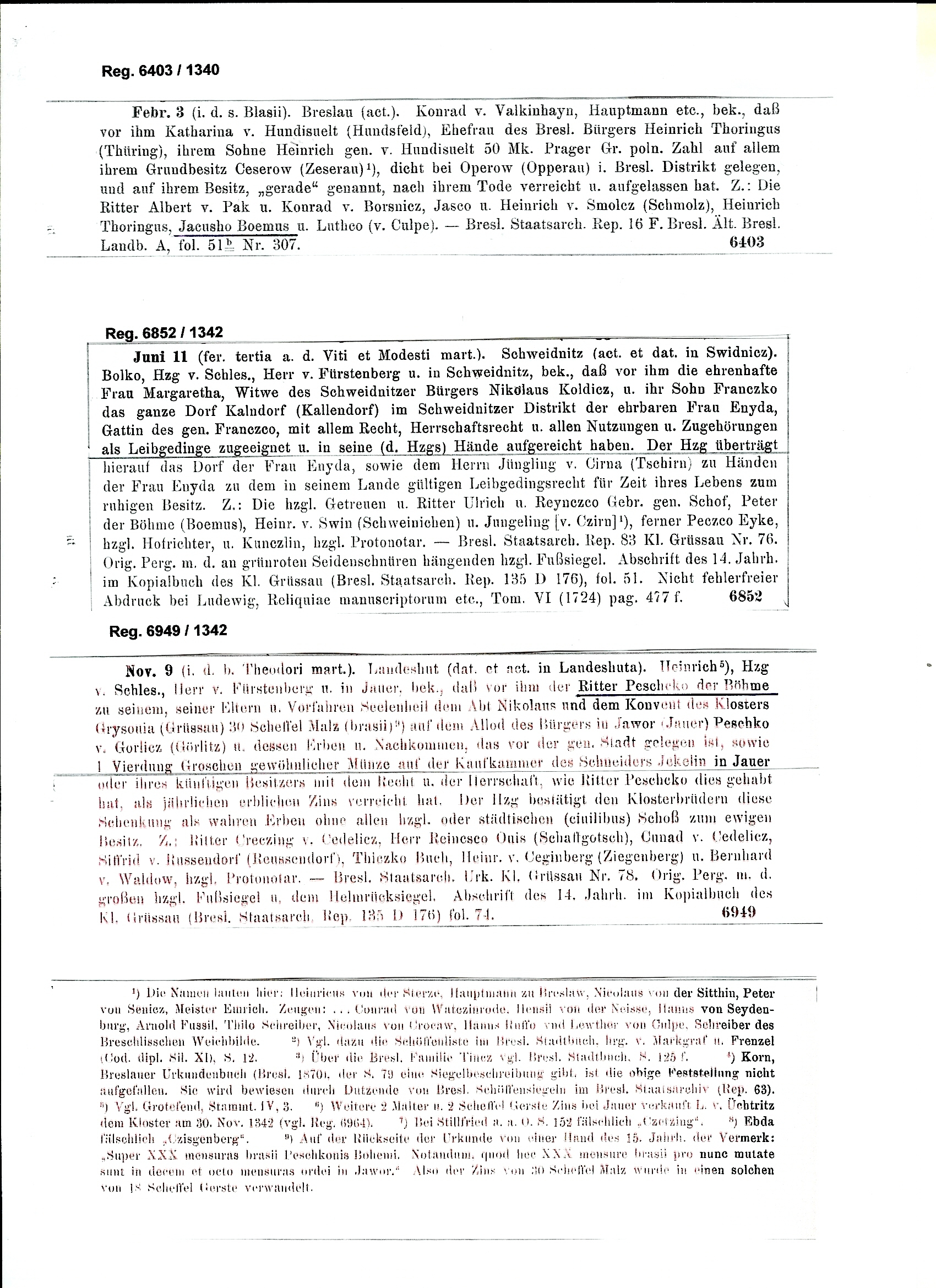 Witco Boemus [Witigo Beheim] Nennung in der Urkunde zum Kloster Heinrichau No. 6749 vom 2.Feb.1342 [Page 13]