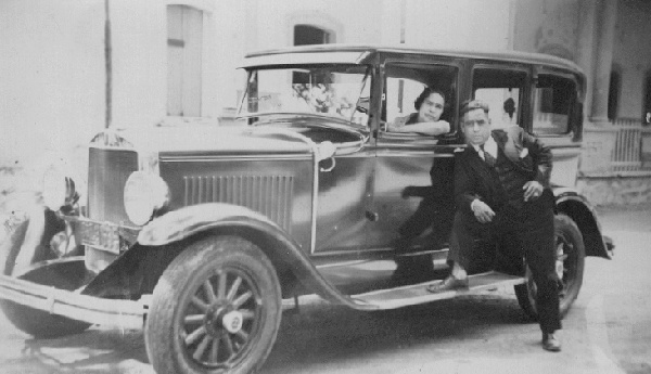 Primer automovil en la familia, 1930, mi tía abuela Concha y mi tío José