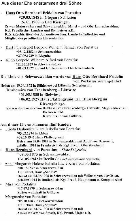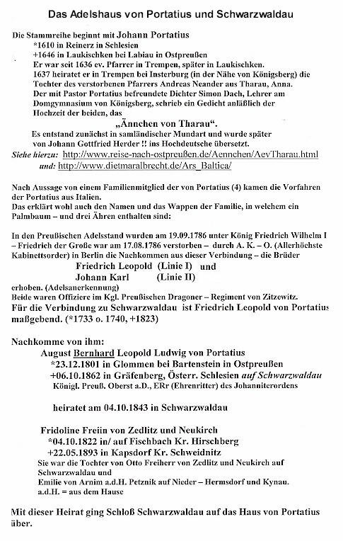 Das Adelshaus von Portatius und Schwarzwaldau